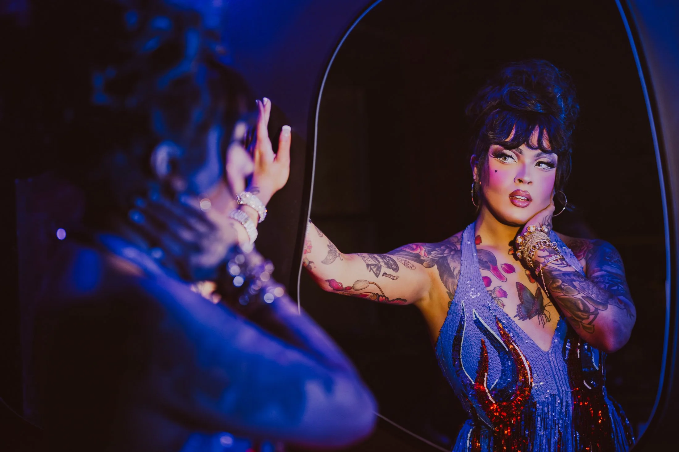 I say it all the time and I'll say it again: photographing drag artists is one of the greatest privileges of this work. The artistry is staggering. The fashion, the glamour, the tom-foolery. These performers are their own creative directors, makeup artists, costume designers, and storytellers — and when they show up to a shoot, they bring all of it. There's no warming up. There's no awkward first twenty minutes of figuring out how to stand. They arrive fully realized. Photographing that is easy, because the work is already half done before the shutter clicks.