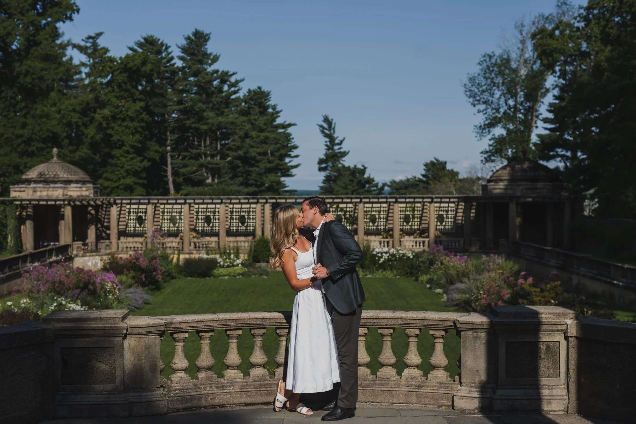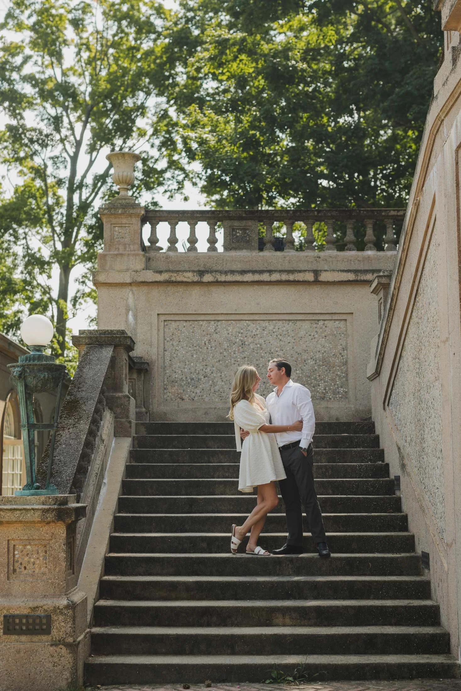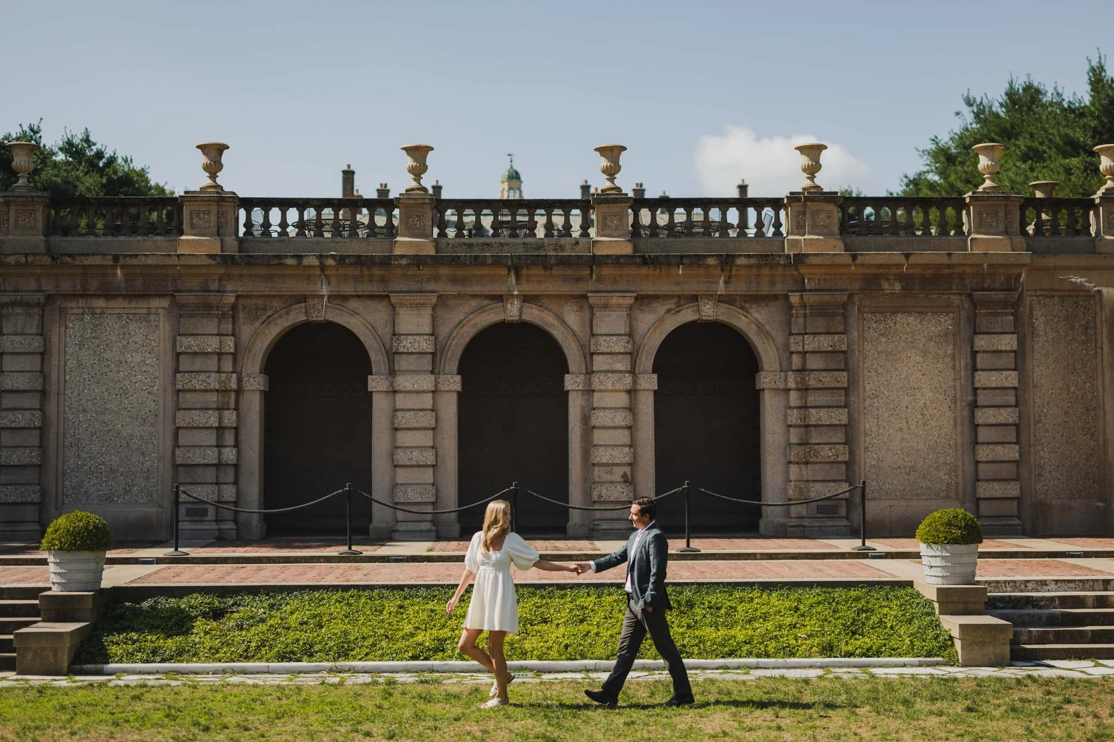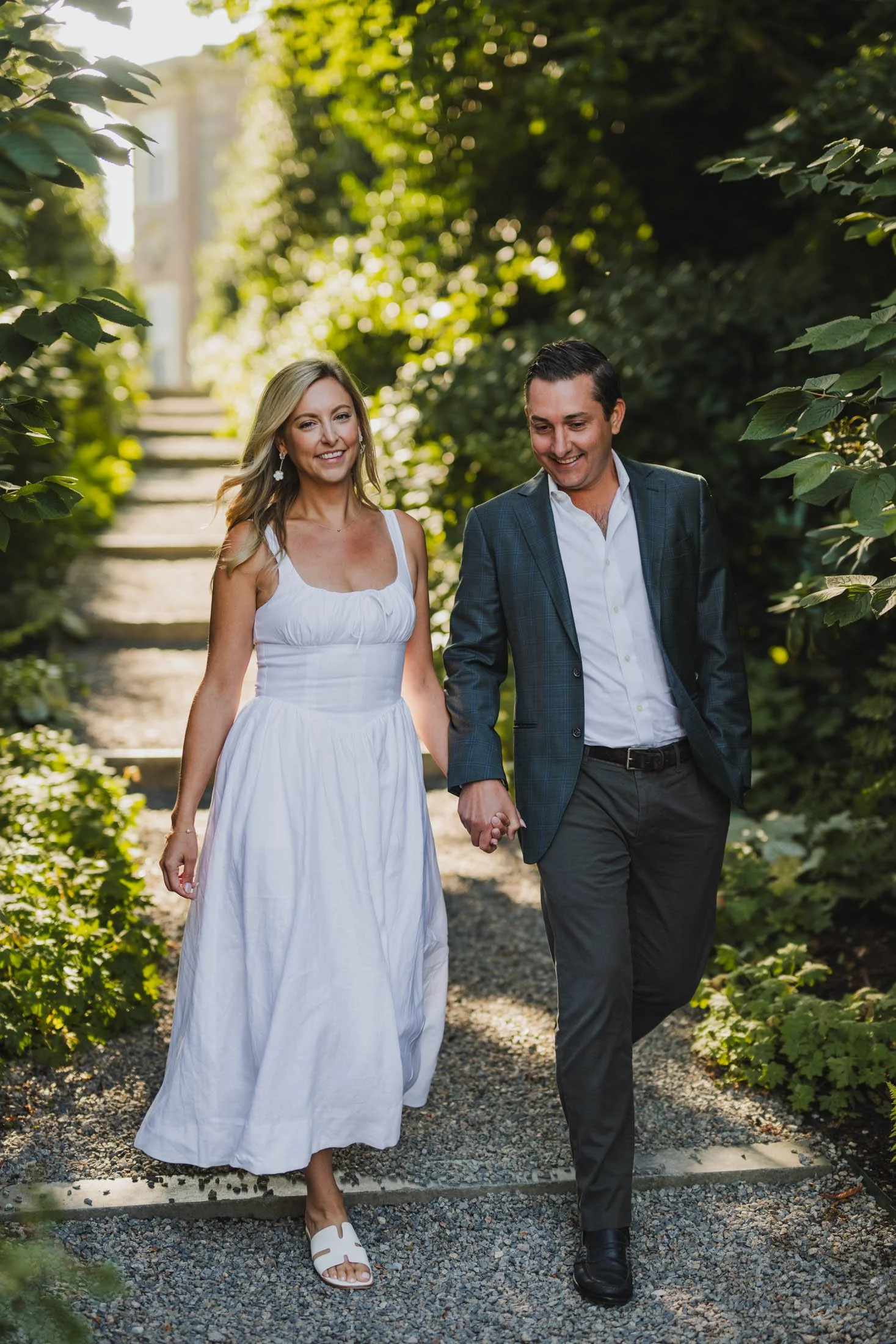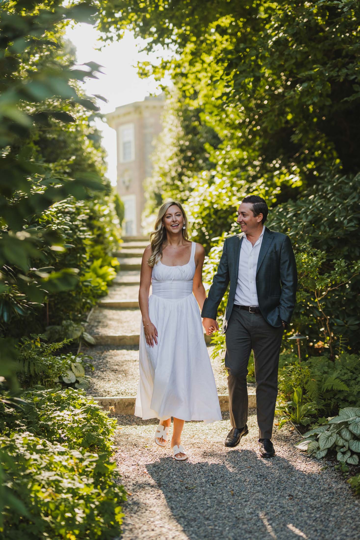 To book your engagement session at Crane Estate, you’ll need a photography permit. The fee goes toward maintaining this stunning historic property (so worth it). With that, you get access to the gardens, grand staircases, and rolling landscapes that make this place so magical. Pro tip: weekday mornings are ideal for fewer crowds and that perfect golden glow like we got for L + D.