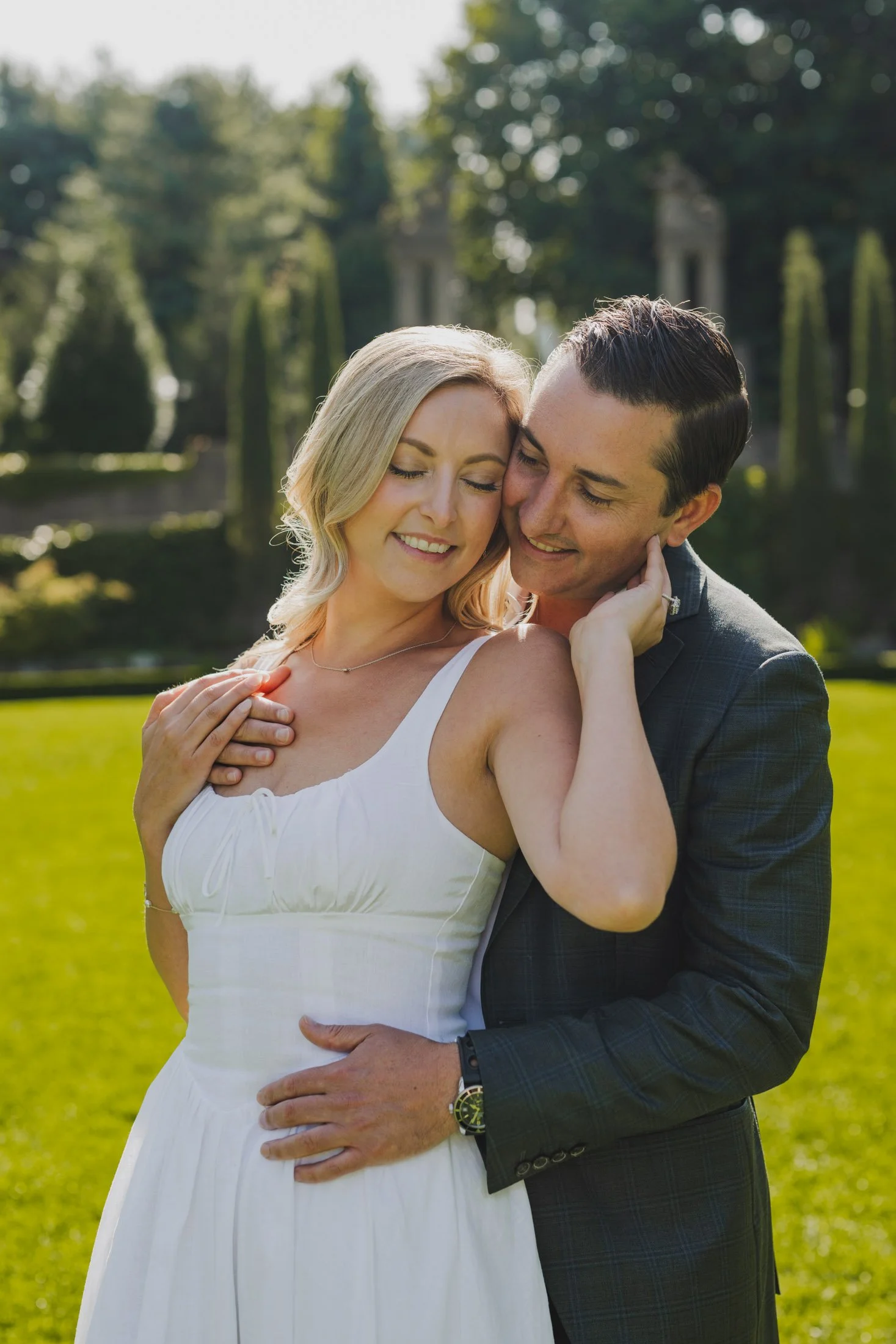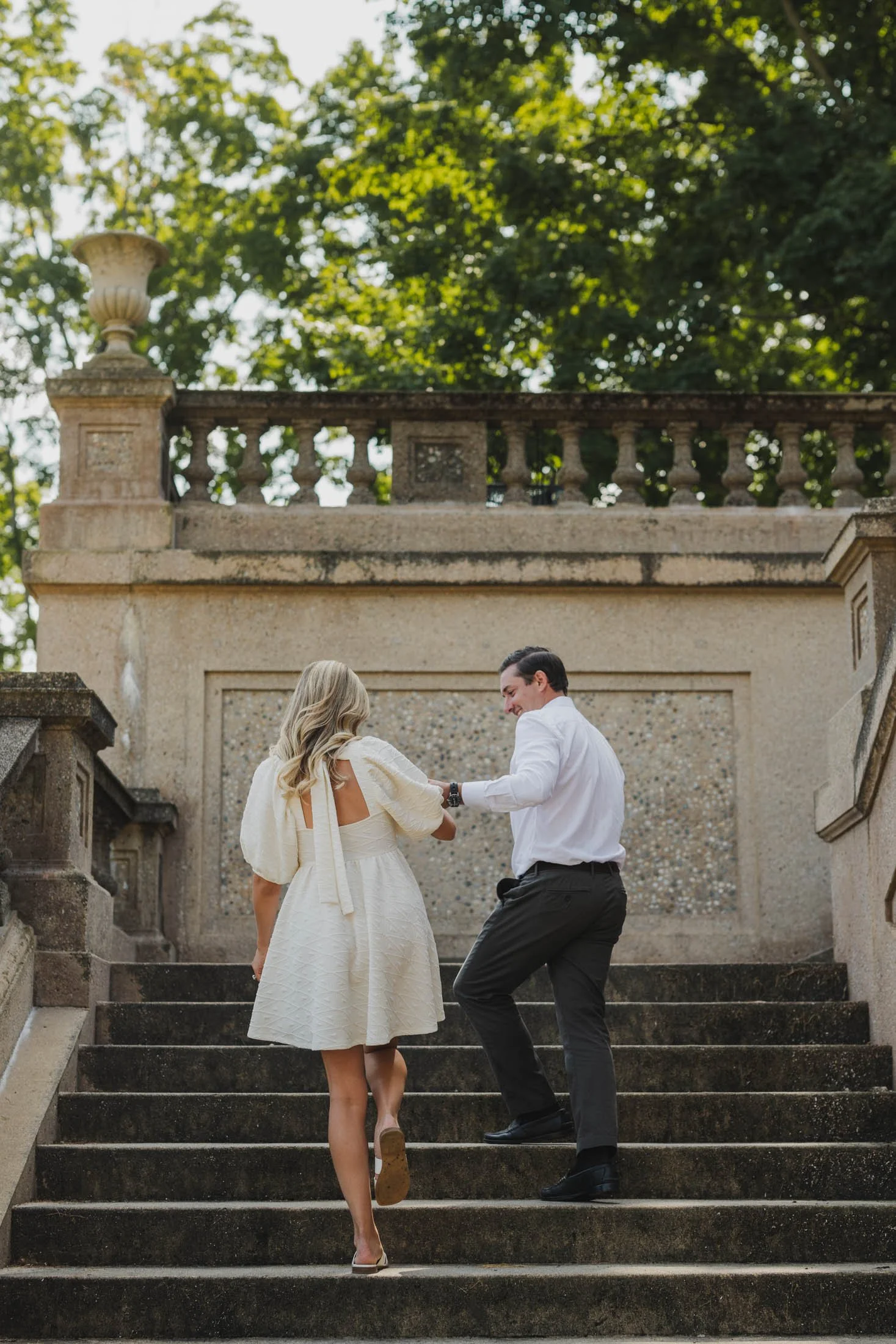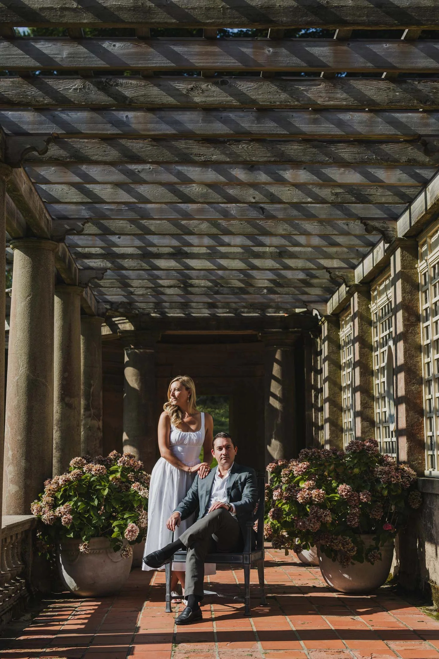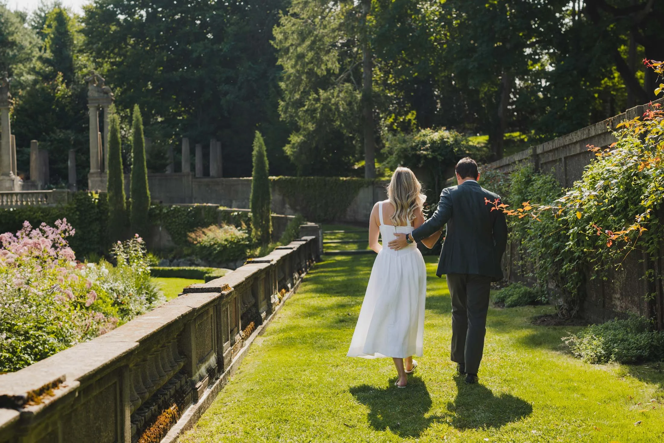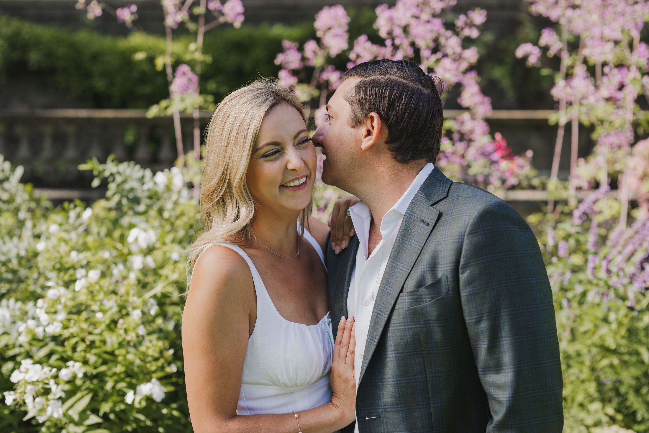 To book your engagement session at Crane Estate, you’ll need a photography permit. The fee goes toward maintaining this stunning historic property (so worth it). With that, you get access to the gardens, grand staircases, and rolling landscapes that make this place so magical. Pro tip: weekday mornings are ideal for fewer crowds and that perfect golden glow like we got for L + D.
