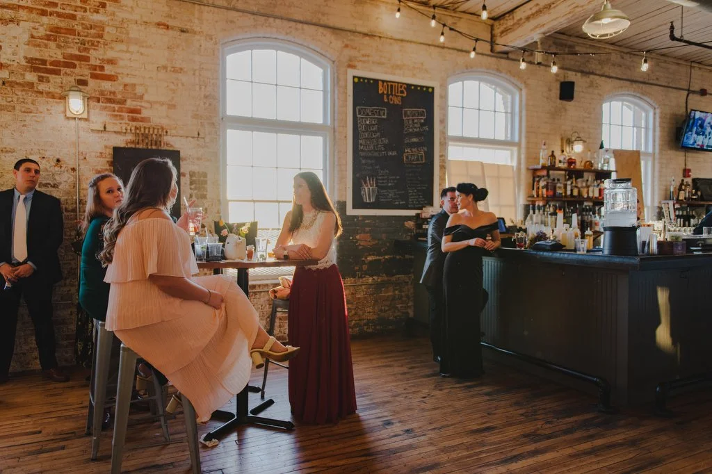 As you’ll see below, the restored factory’s main event space, The Met, has an open floor plan that can accommodate up to 200 guests. It’s exposed brick walls, high ceilings, and large windows, create a warm and intimate atmosphere, and they are the perfect backdrop for photos. I also LOVE that there is a bar and bowling alley just upstairs from The Met, which is often used for cocktail hour. It’s such a fun space for those parts of the wedding day, not to mention the golden light just pours in as the sun sets. It’s a dynamic, editorial spot for your photos, too!