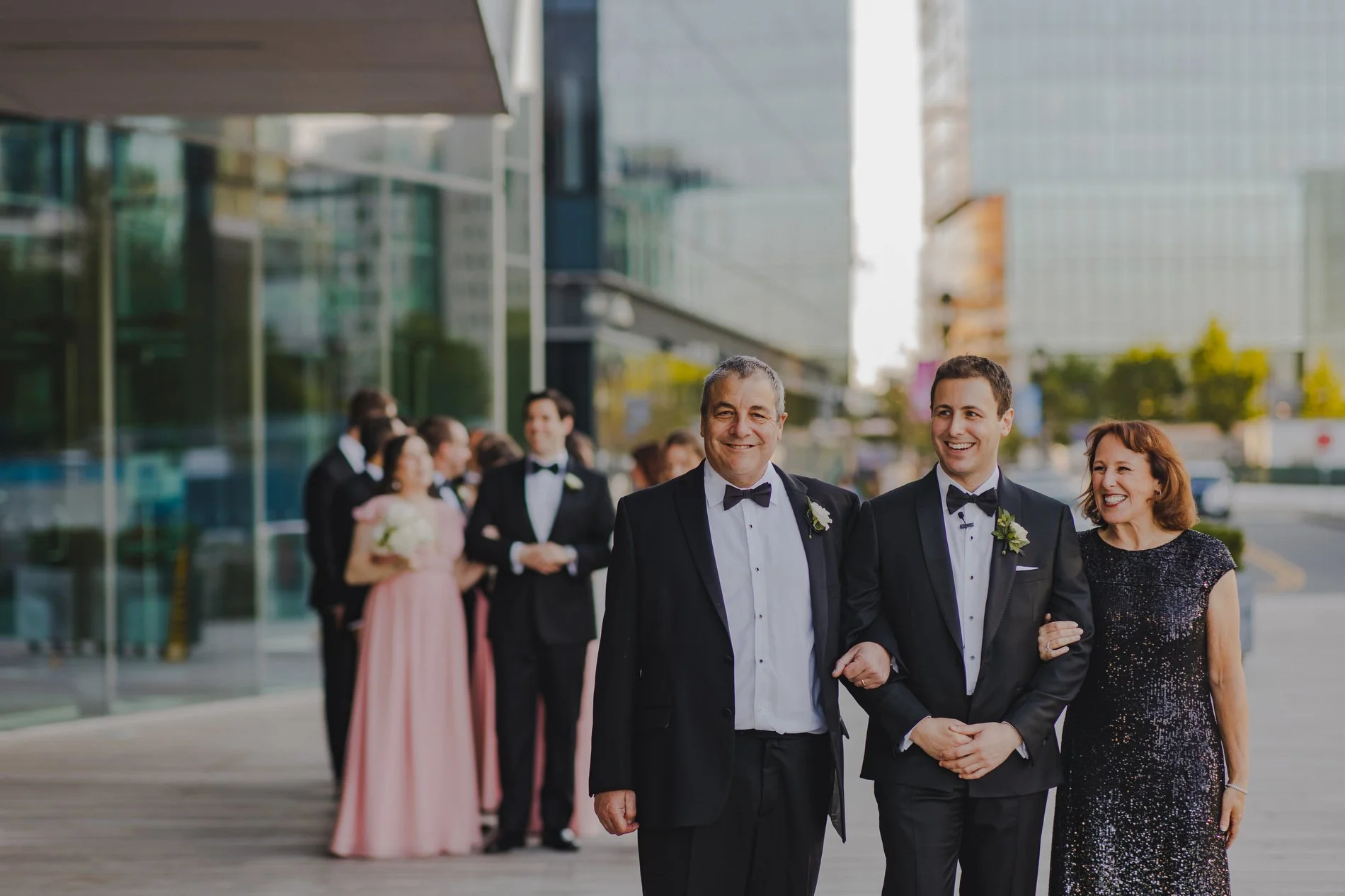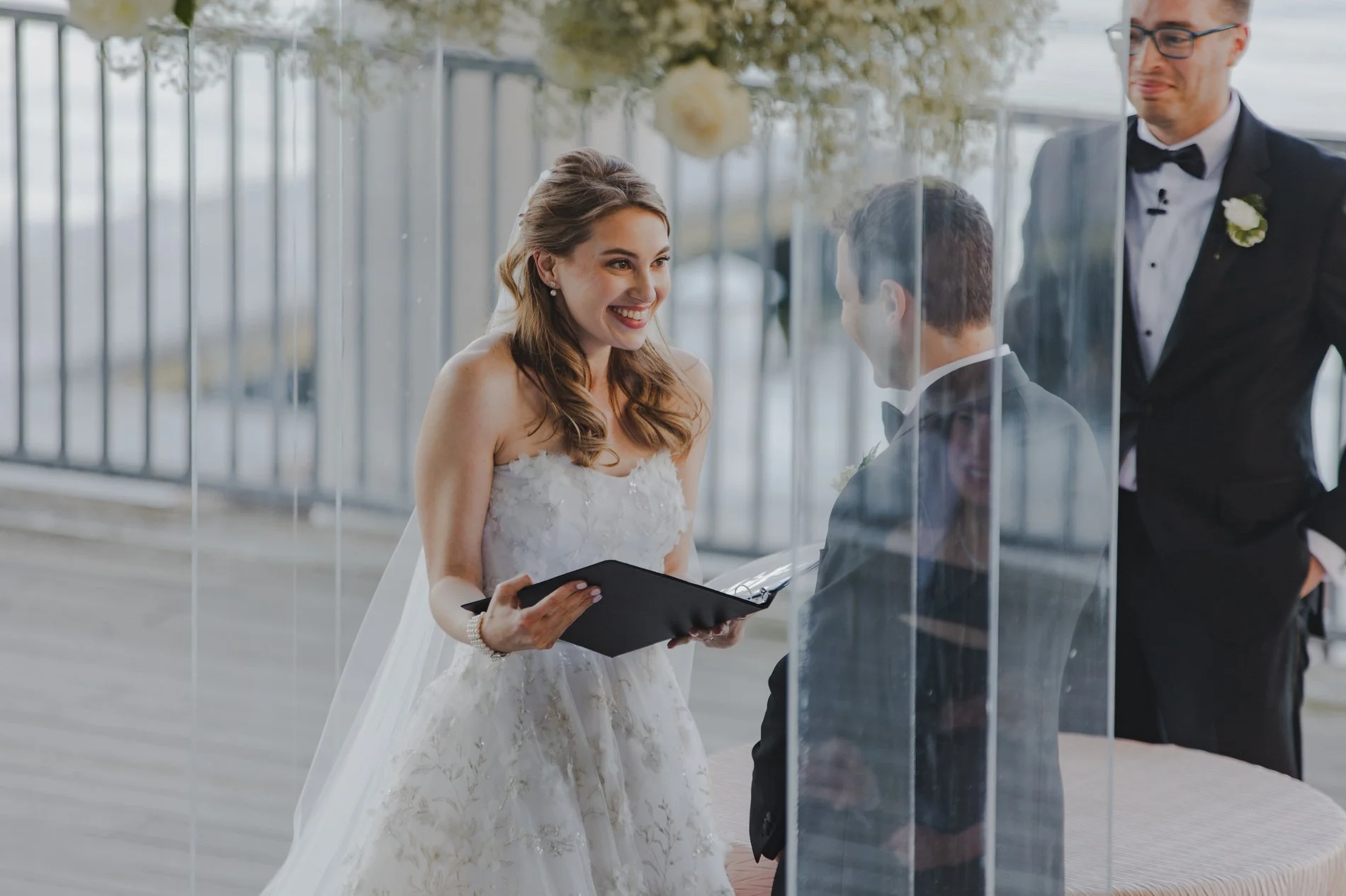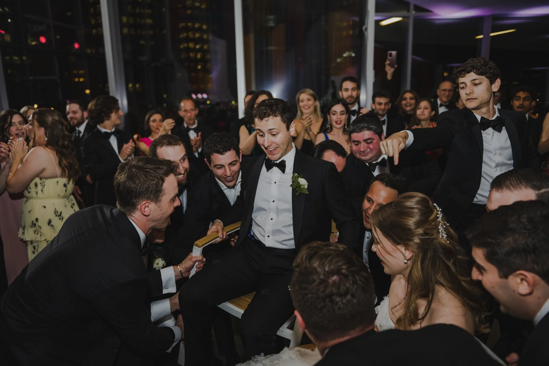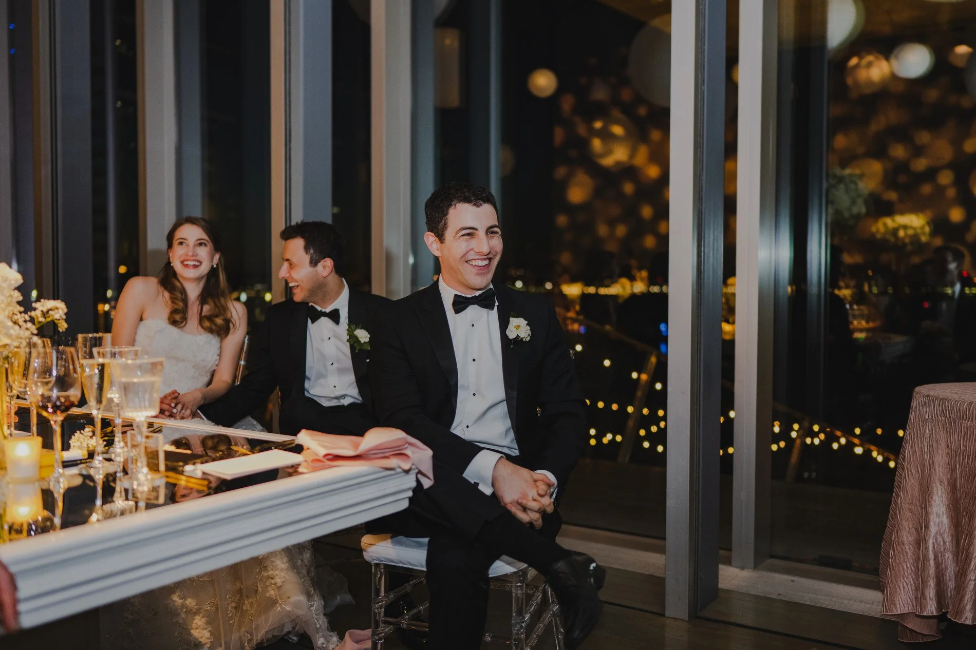 And when I say beautiful, I mean beautiful! A blush and white color palette, classic for weddings, when paired with a modern design aesthetic was elevated and at times otherworldly. Corinne’s bouquet was made of white peonies and her clear acrylic chuppah was topped with so much baby’s breath it looked like clouds floating in the sky above the couple as they read their vows and exchanged rings. Table and Tulip really outdid themselves with this one!