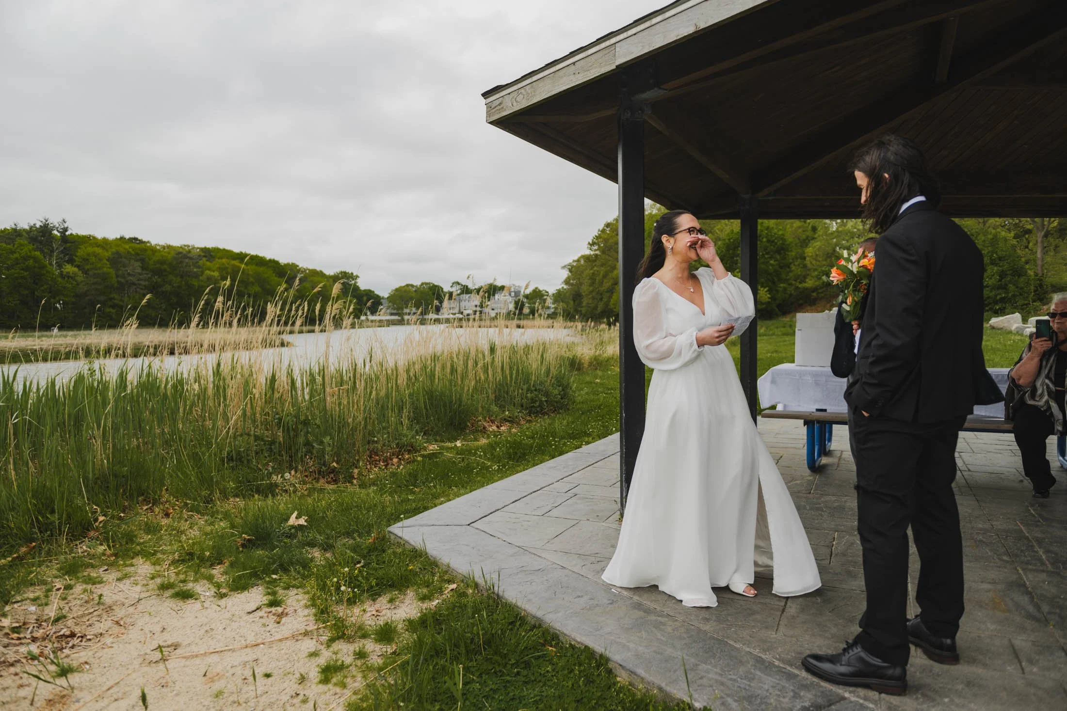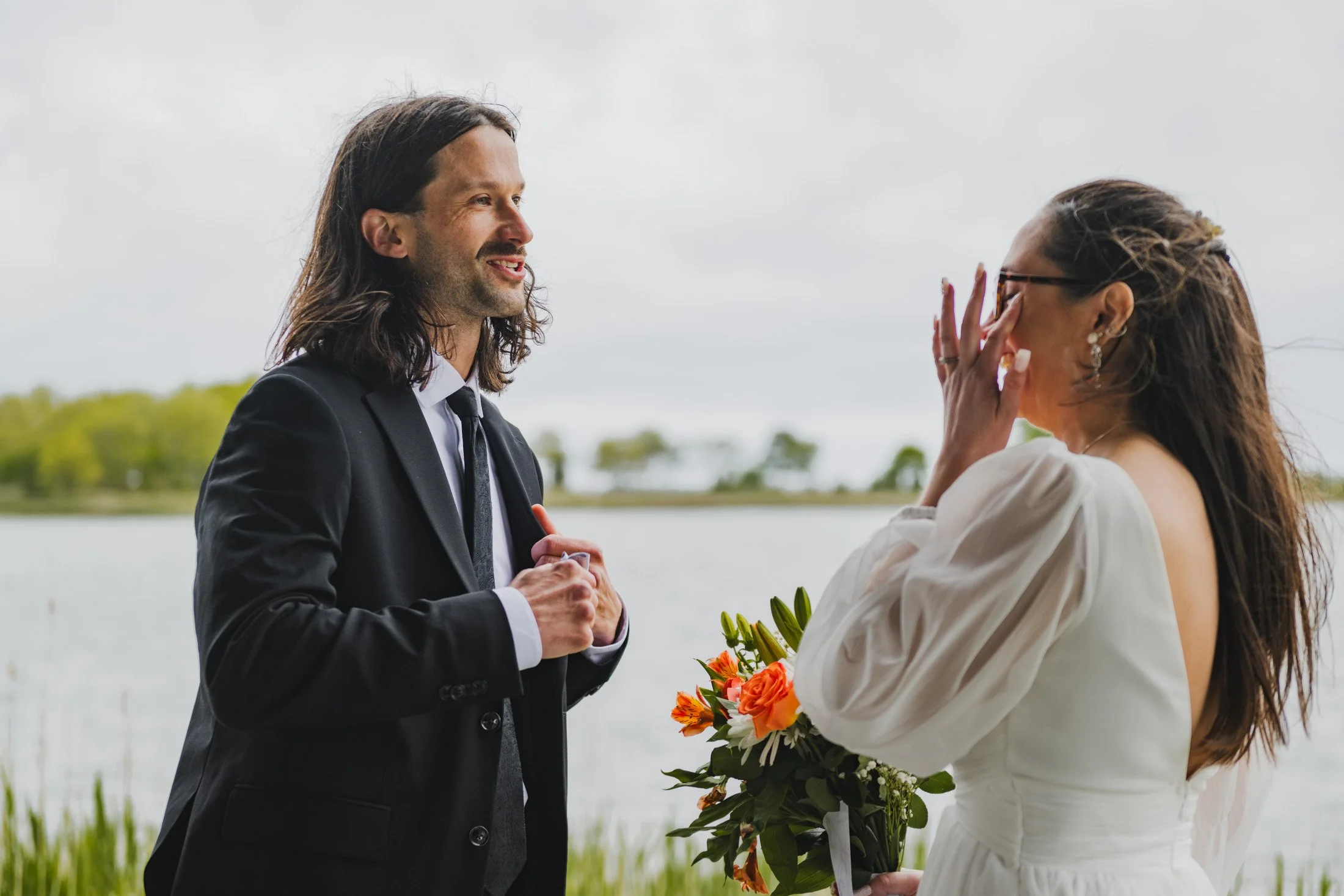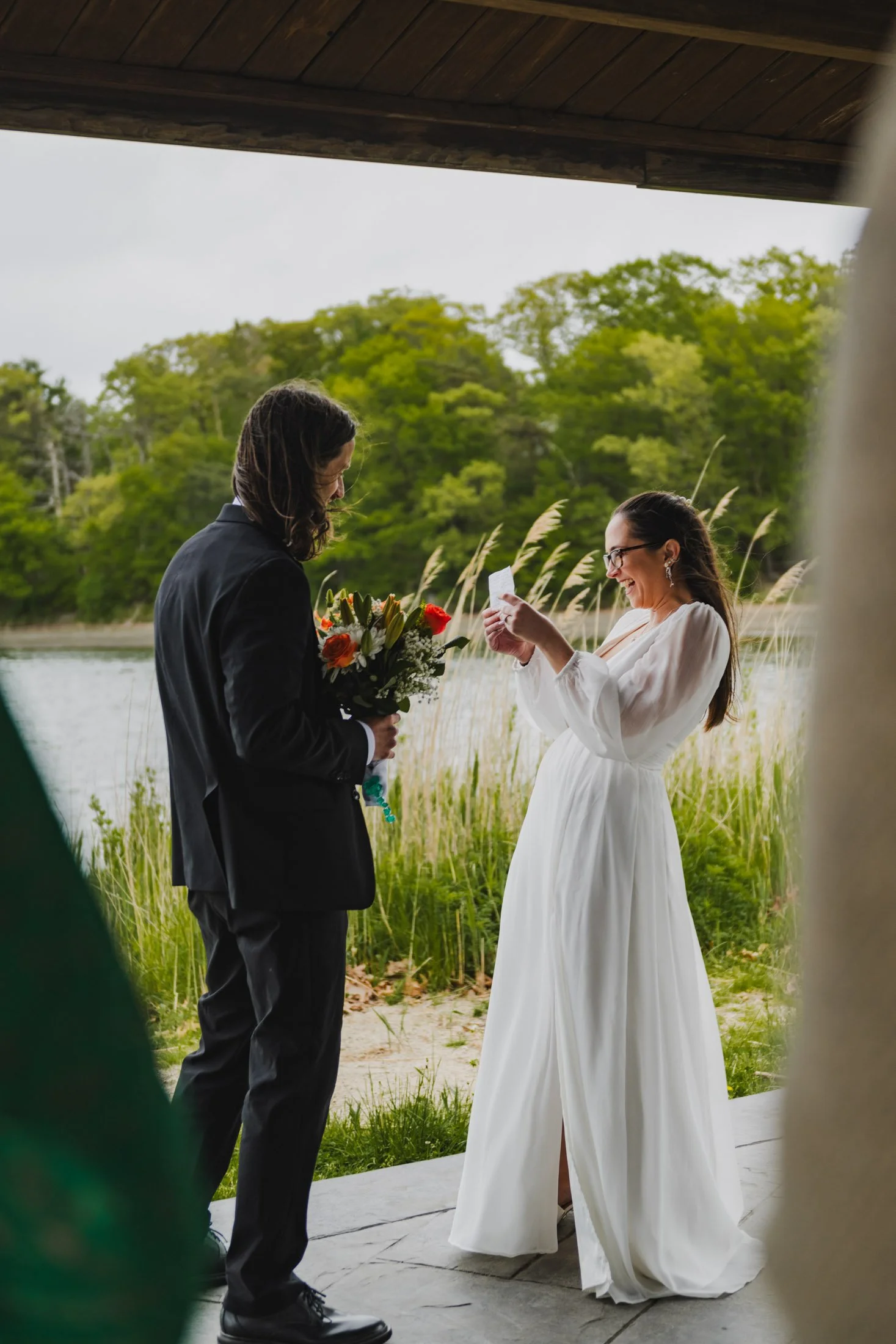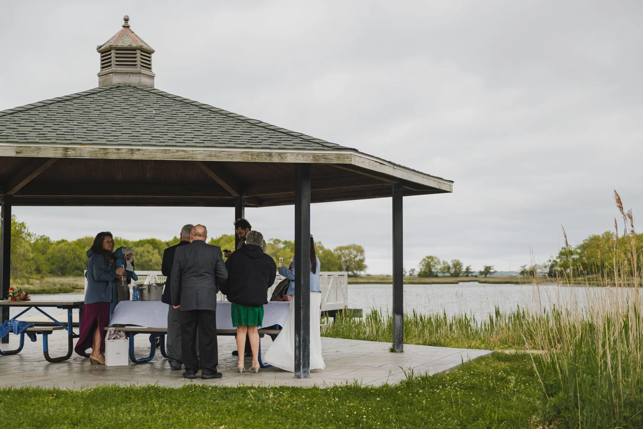 We started their day with couples photos around the park, before meeting up with their guests at the gazebo for a ceremony with water views. With just their immediate family and a friend present, their was an intimacy to their celebration that led to some truly beautiful moments, including tear-filled vows on both sides. Keep scrolling to see the sweetest day, including a final shot of fireball at the end!