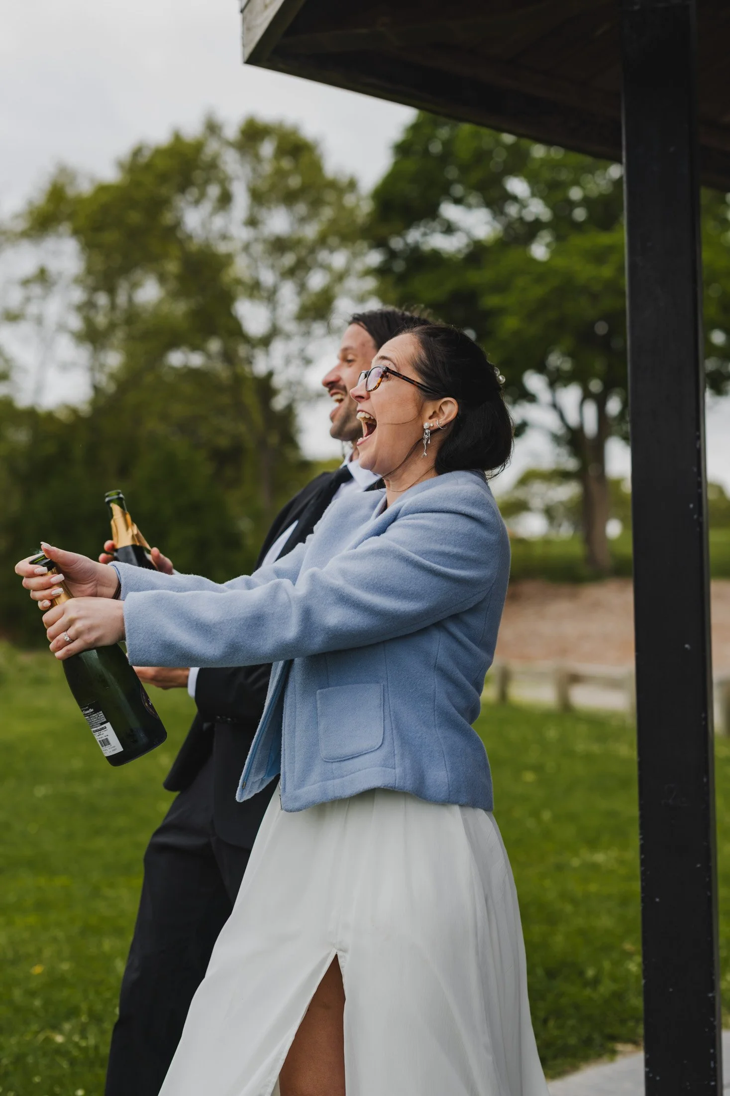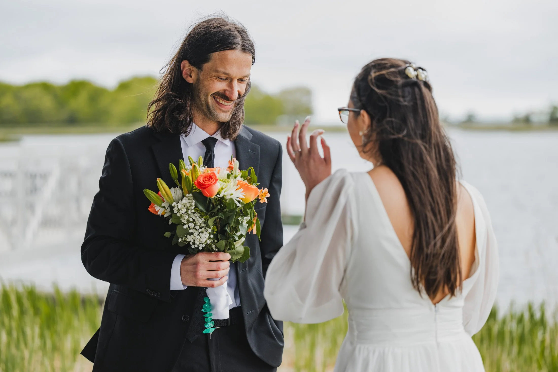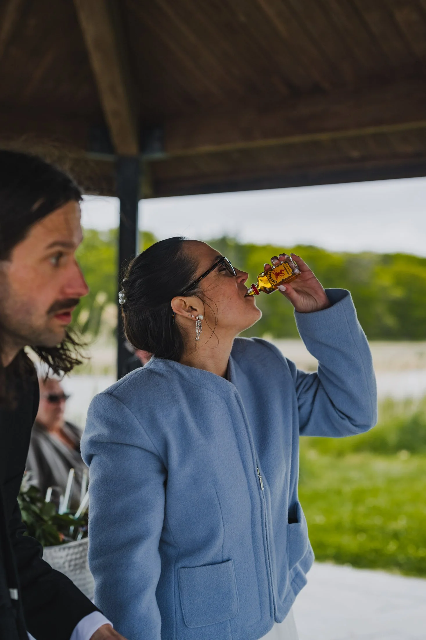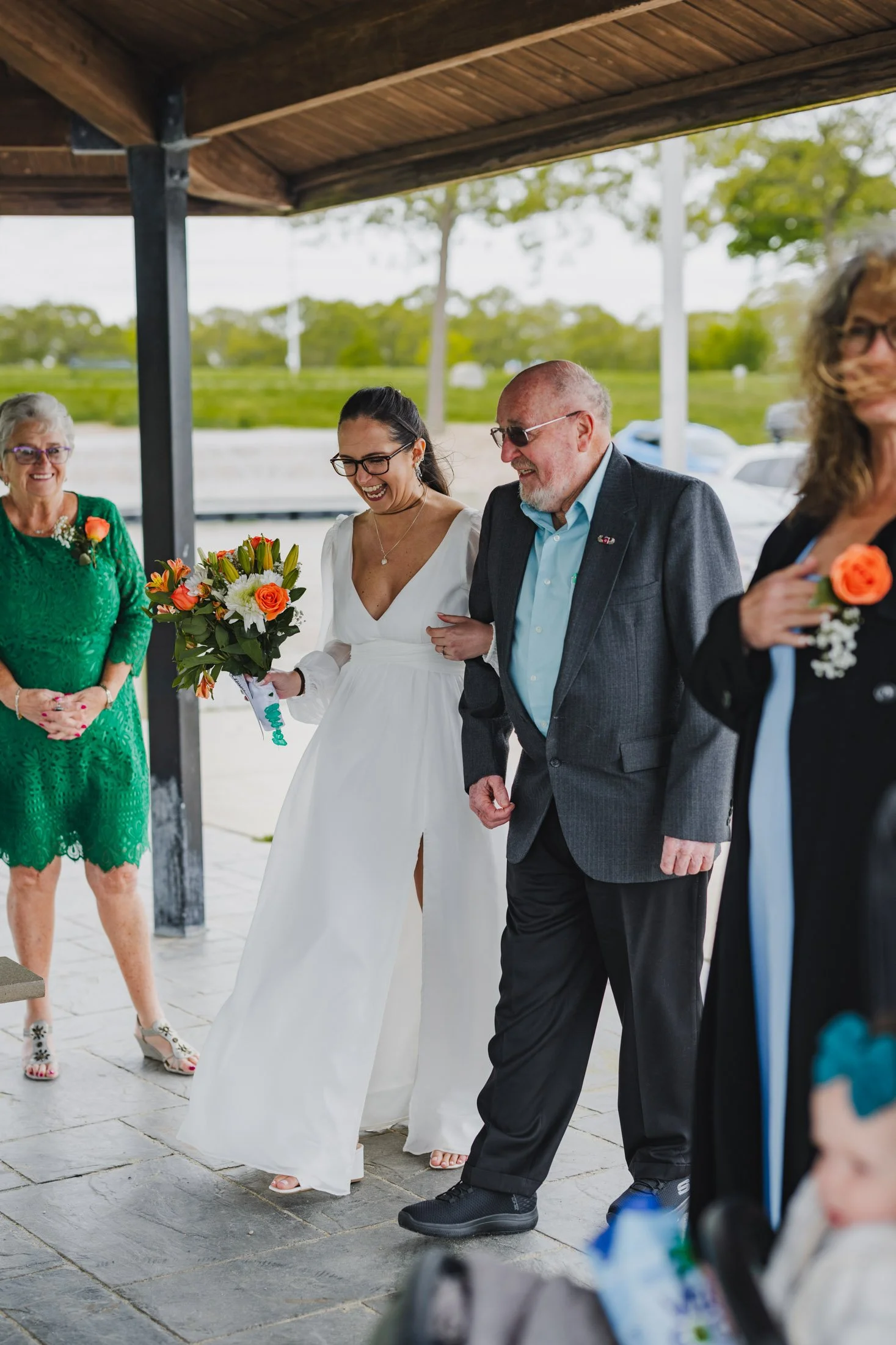 We started their day with couples photos around the park, before meeting up with their guests at the gazebo for a ceremony with water views. With just their immediate family and a friend present, their was an intimacy to their celebration that led to some truly beautiful moments, including tear-filled vows on both sides. Keep scrolling to see the sweetest day, including a final shot of fireball at the end!