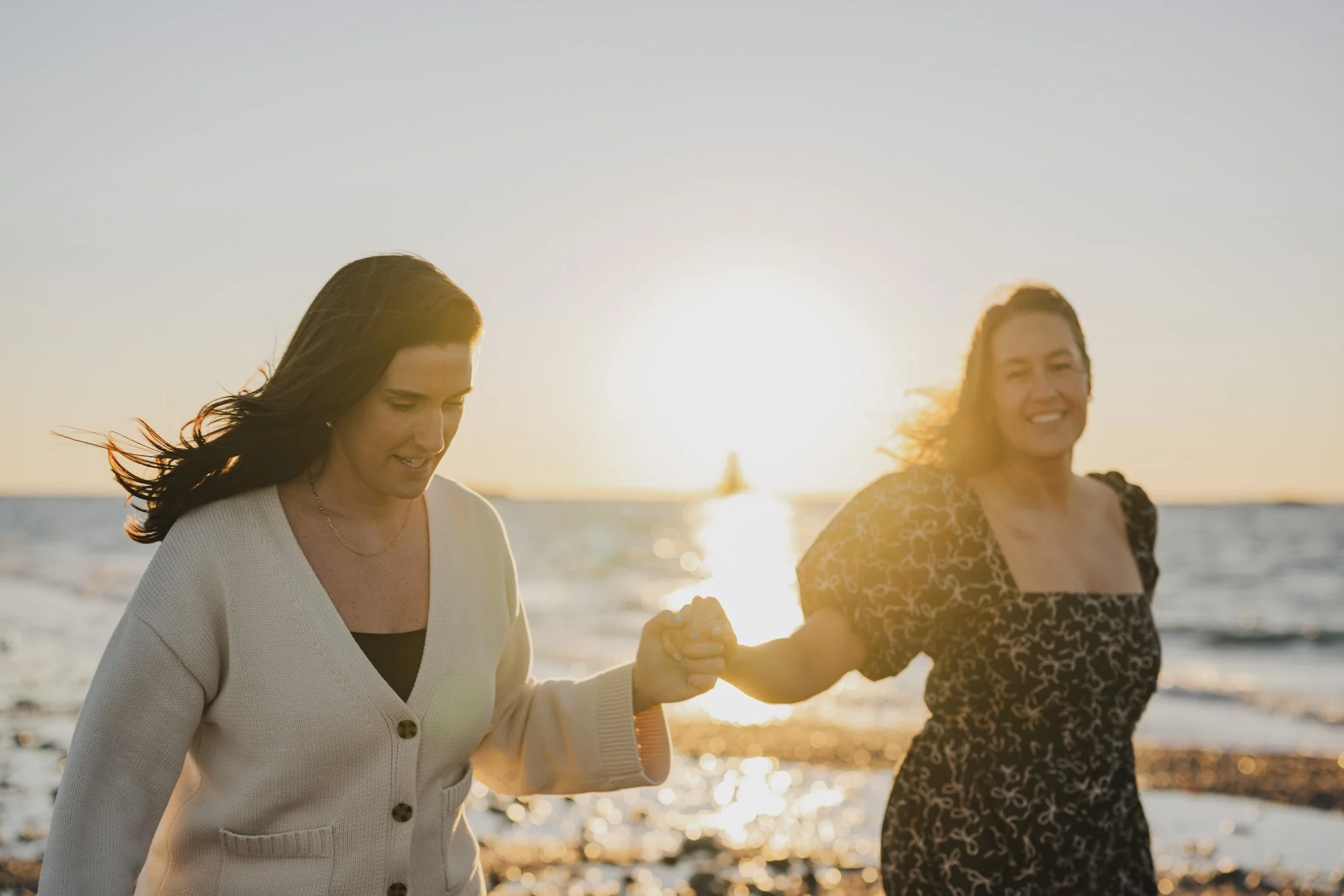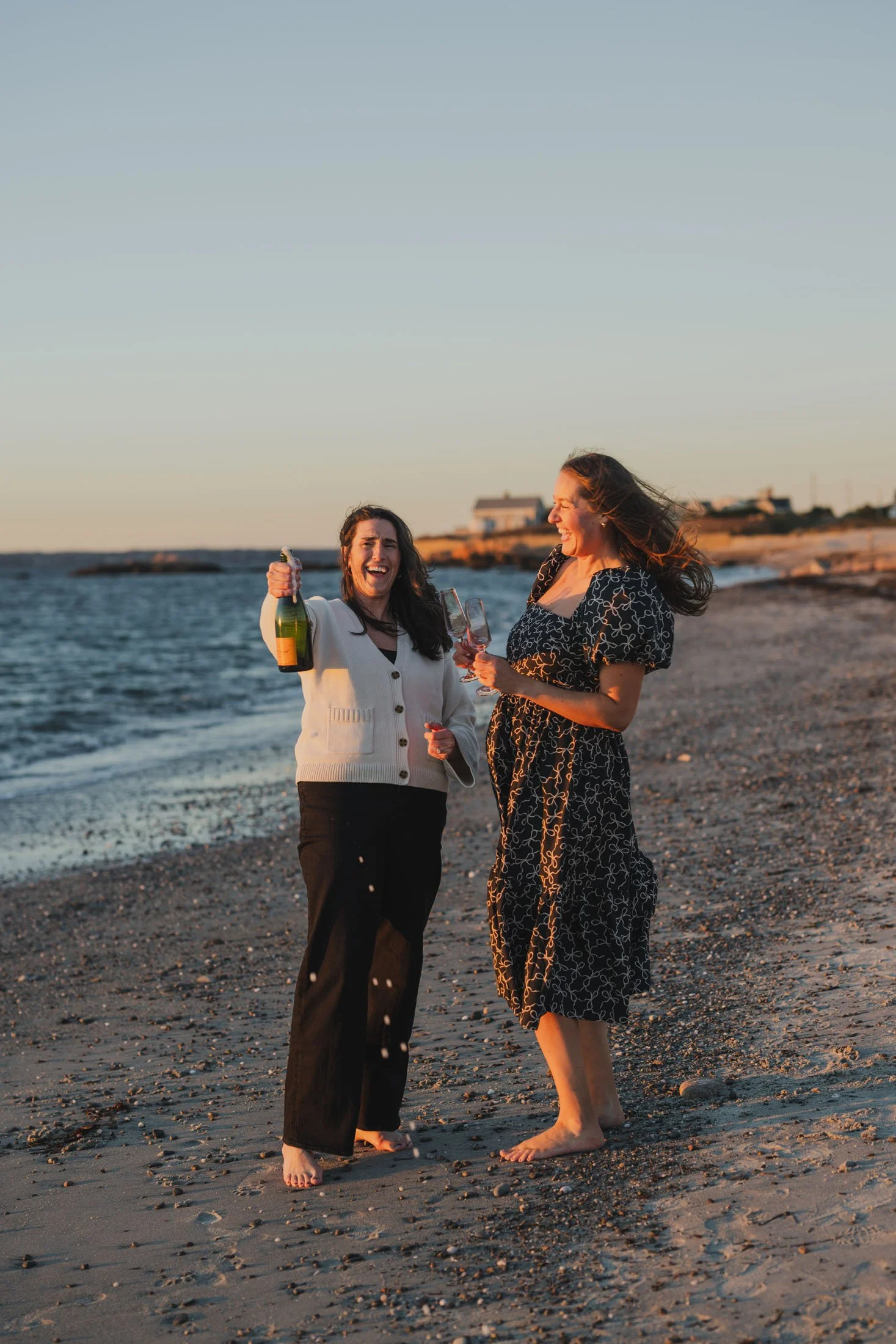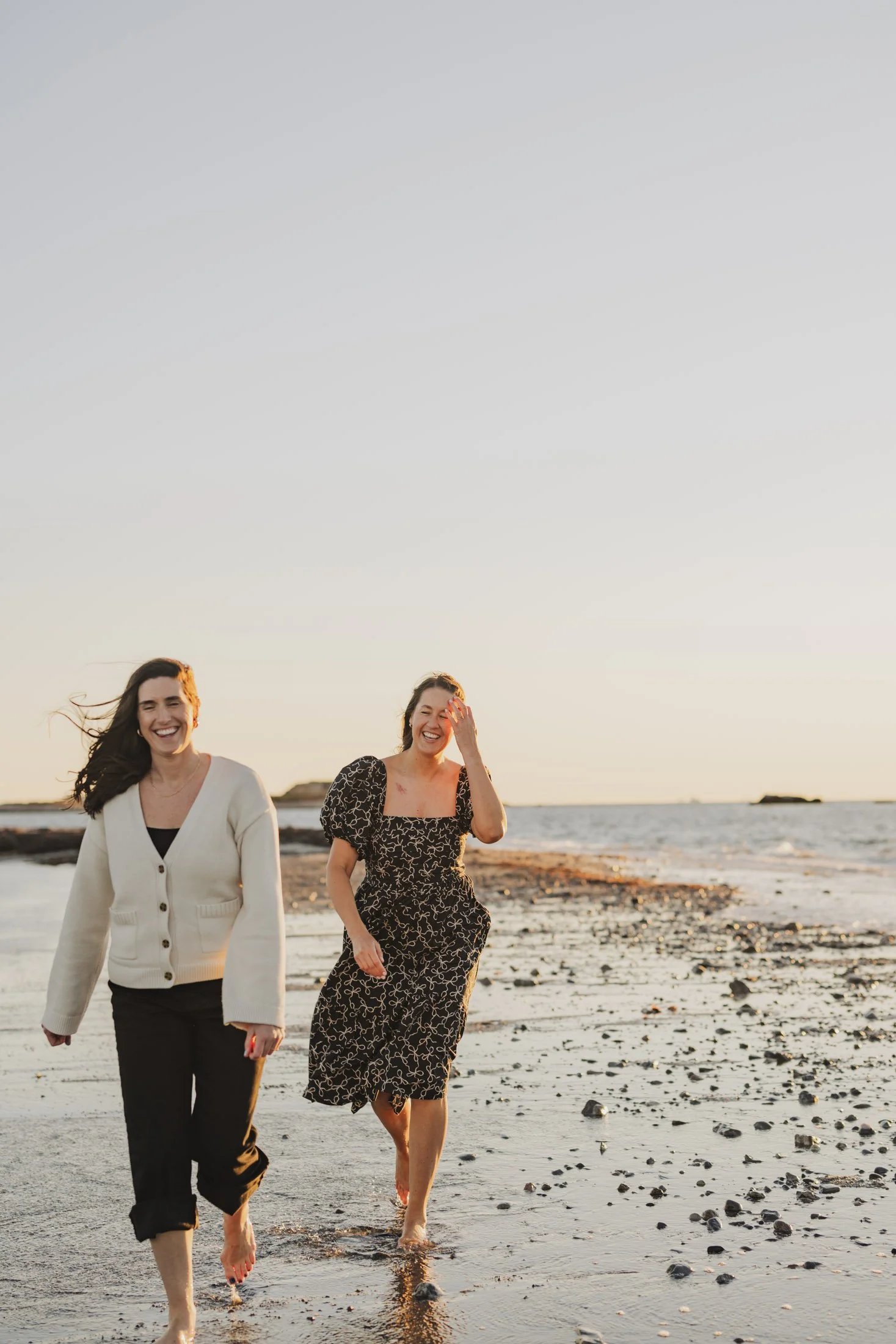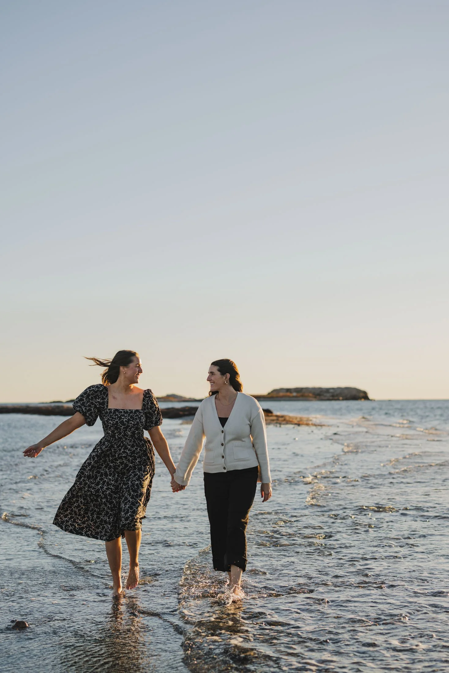 There’s something special about golden hour on the coast — and Molly and Jackie found the perfect hidden spot for theirs. Tucked away in a quiet seaside town in Rhode Island, this secluded beach became the dreamiest backdrop for their engagement session. It's a place they stumbled upon during one of their many adventures, and it couldn’t have been more perfect for capturing this chapter of their love story. If you're looking for a lesbian wedding photographer or planning your own LGBTQ+ engagement session in Rhode Island, this coastal setting offers all the charm and intimacy you could ask for.