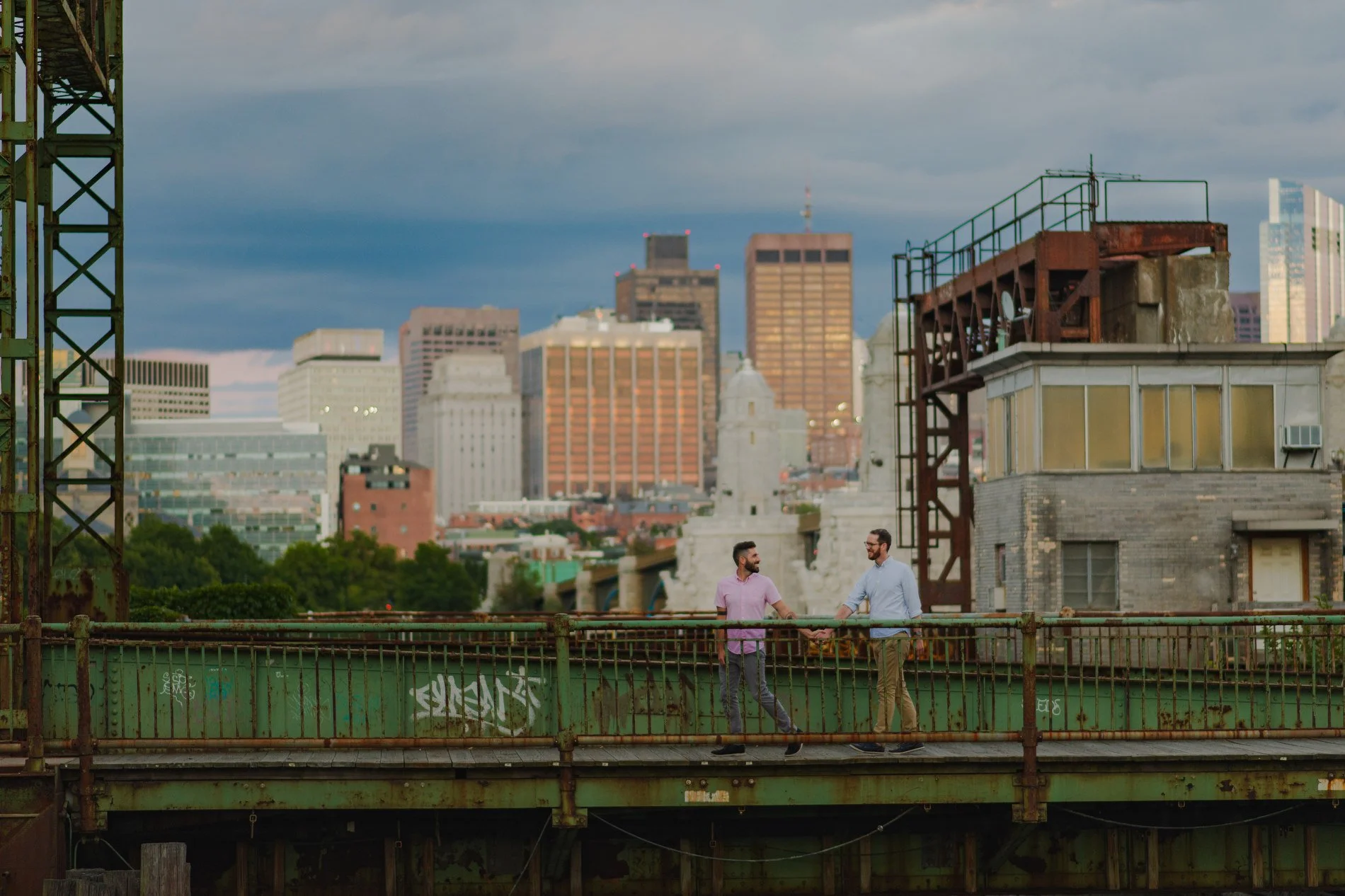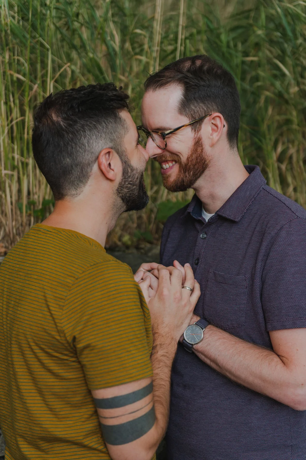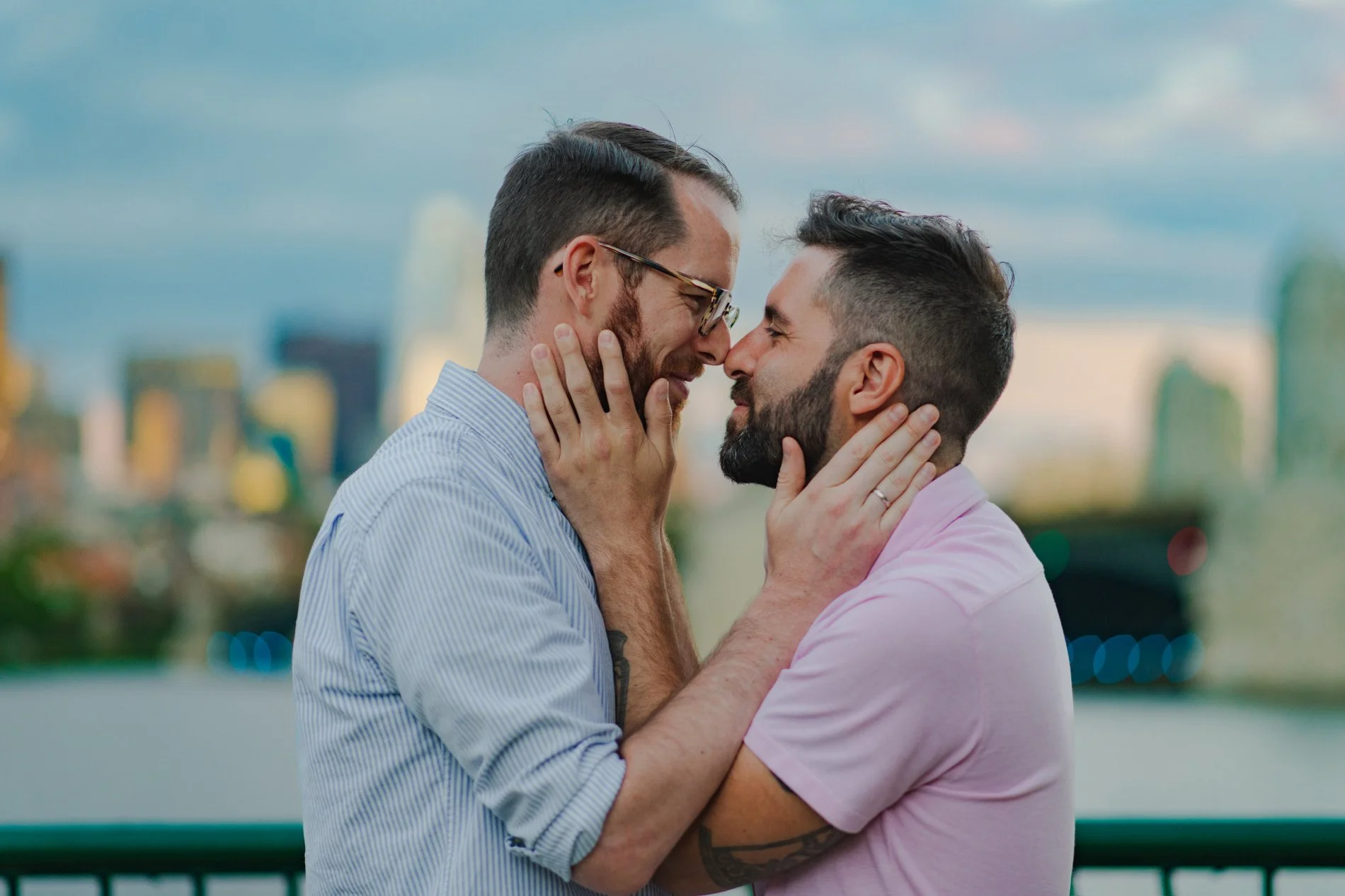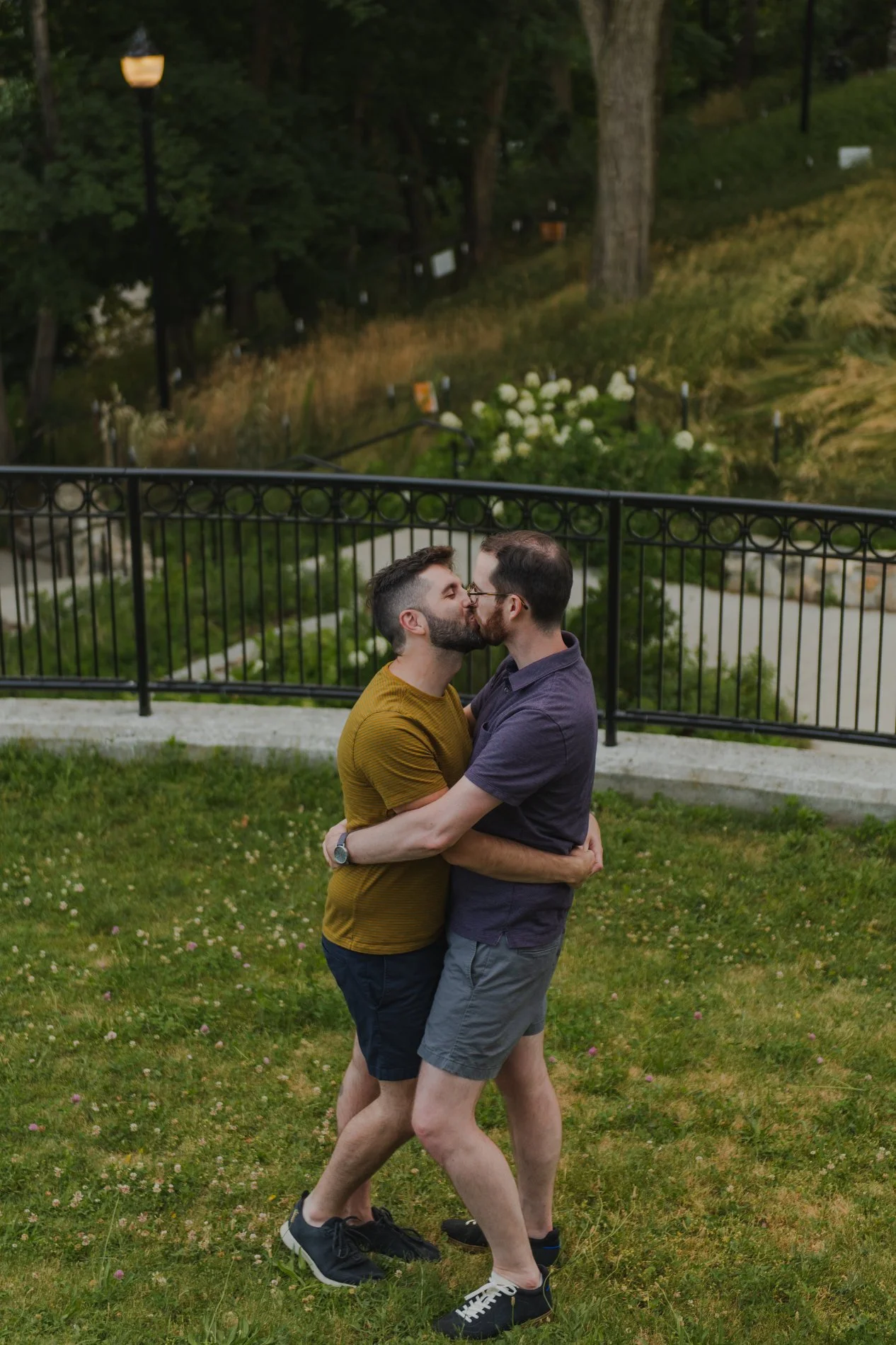 We then headed to the pair’s apartment for a quick outfit change and some stoop photos before heading out to our last location - the Cambridge Canalwalk! This is a hidden gem, in my opinion. It’s right by a number of yummy restaurants, a few blocks from the Kendall Square MBTA Stop, and boasts stunning views of Boston beyond the Charles River. We got there right as the sun began to set, peak golden hour, and it was a truly magical way to end their session.