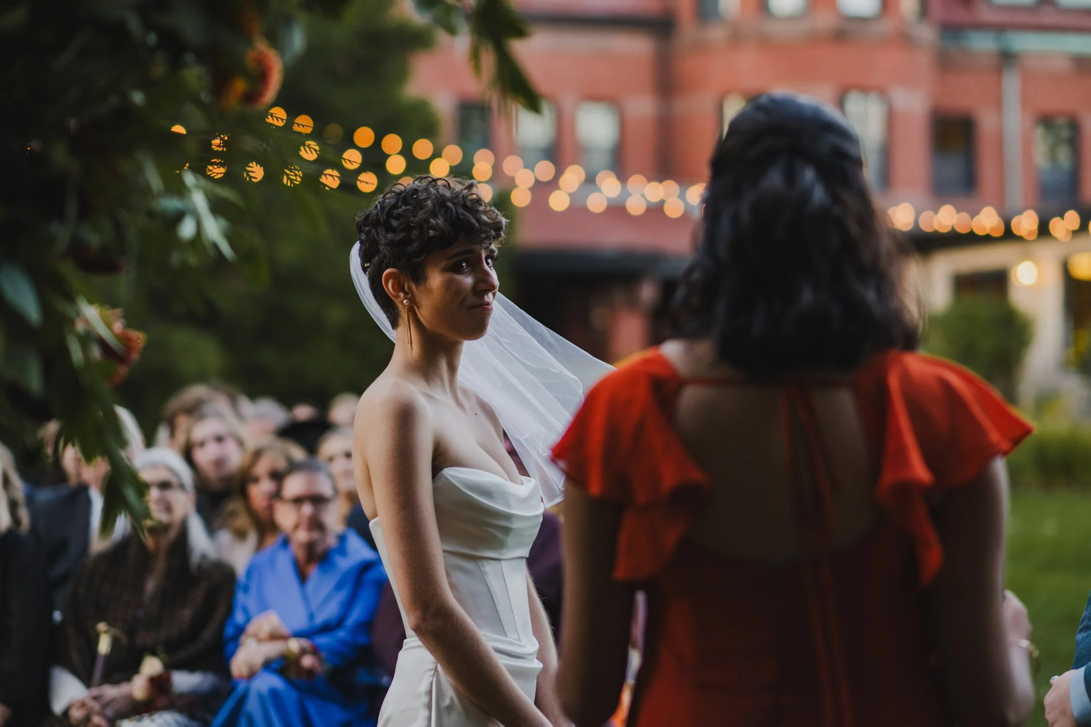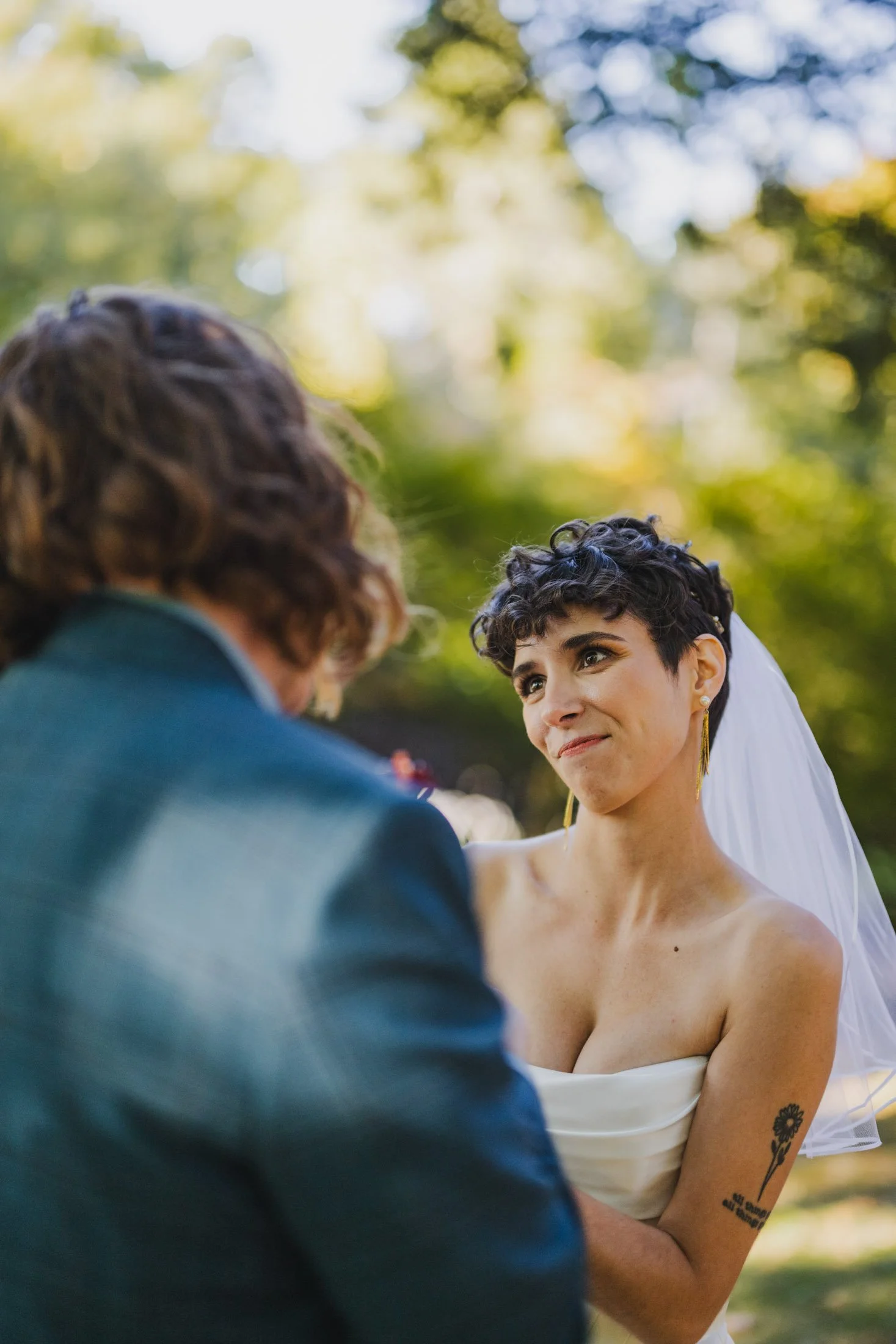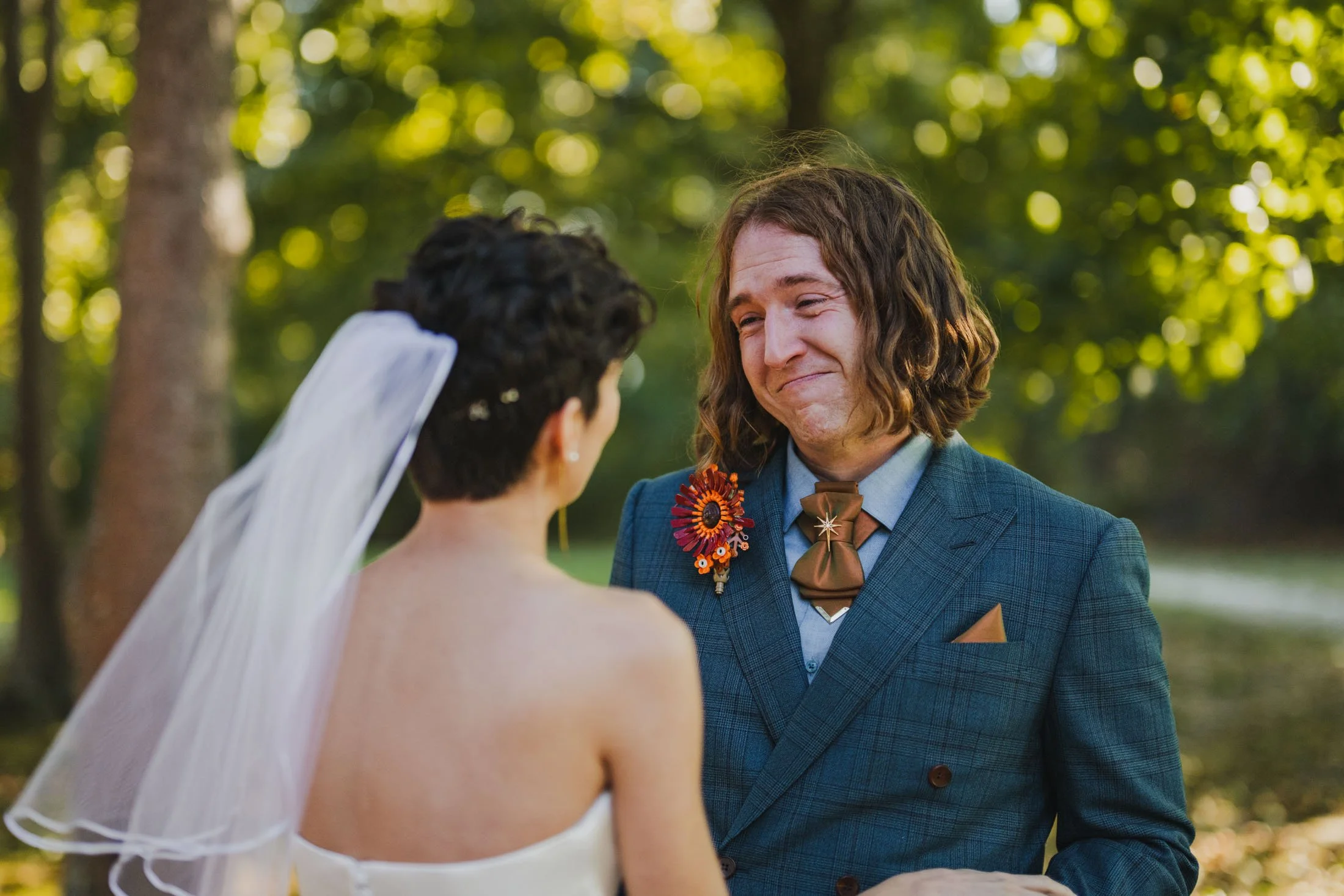 Anne and Killian’s story began in the early days of the pandemic when they met on Bumble. After ten days of long text exchanges about self-care, Dungeons & Dragons, and the appeal of overalls, they finally met for a socially distanced picnic at Prospect Hill Park. That first date was so promising that Anne confidently told her best friends the next morning that this was “probably going to be a long-term relationship.” She wasn’t wrong.