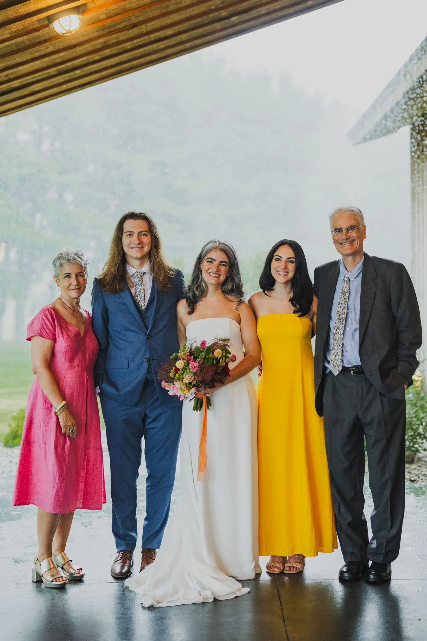 That, sadly, was not the case. But in my book - that is totally okay. I love rain. It adds texture, mood, and vibrance to any day - and this one was no different. The colors of Eliza’s florals and her family and friend’s attire was popping, the rain made us have to think on our feet and choose backdrops for family photos we wouldn’t normally choose but I kind of love it!
